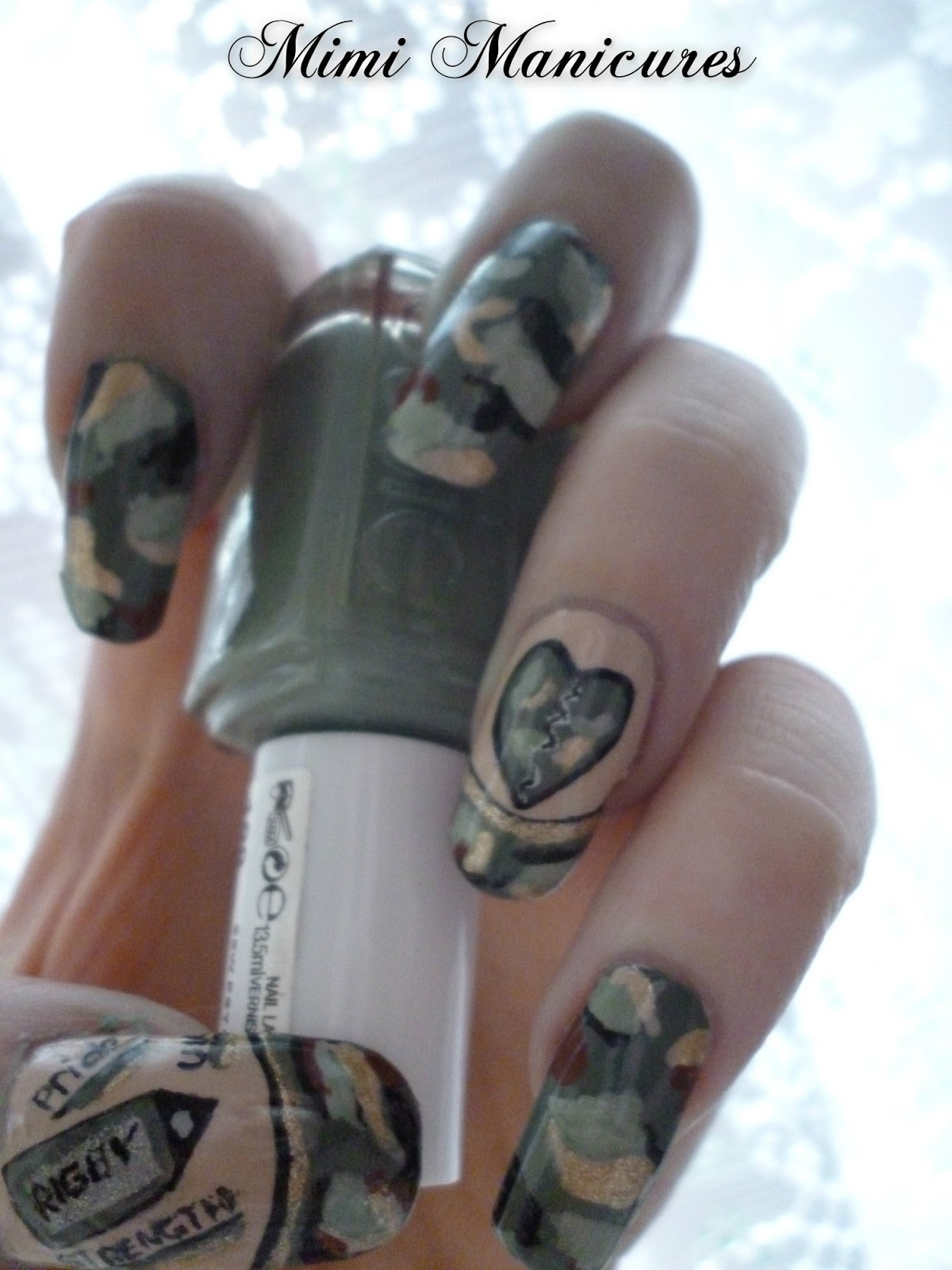 I have decided to do this manicure in support of our fabulous armed forces, here in the UK and far afield. I send my heartfelt love and support to the Rigby family and only hope somehow they will find the strength to move forward, as I'm sure Lee would have wanted. We are very fortunate here to have the brave young men and woman who risk everything everyday to keep us and our families safe....never have I felt so proud of them and our country that unites in such tragic times.